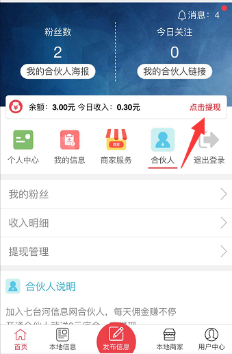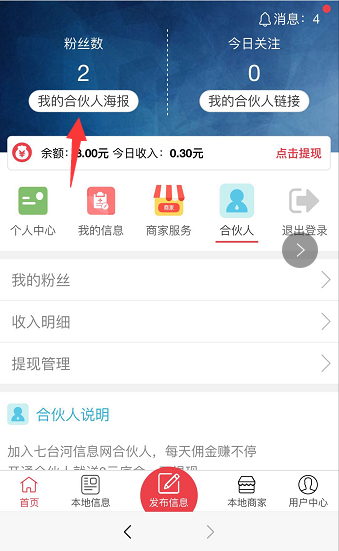 开通东营快客信息港合伙人 分享海报到朋友圈 扫码就有佣金拿注:1月31号前生成海报扫码显示过期的合伙人,请重新到用户中心生成一下海报,这次生成的是永久有效的海报!如何开通合伙人直接登录你的账号,没有账
